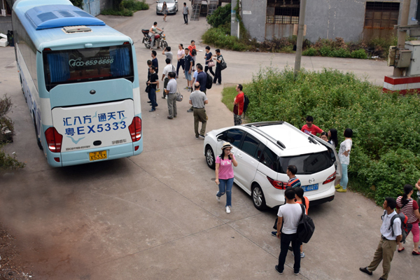 員工及家屬在廠部集合準(zhǔn)備出發(fā)