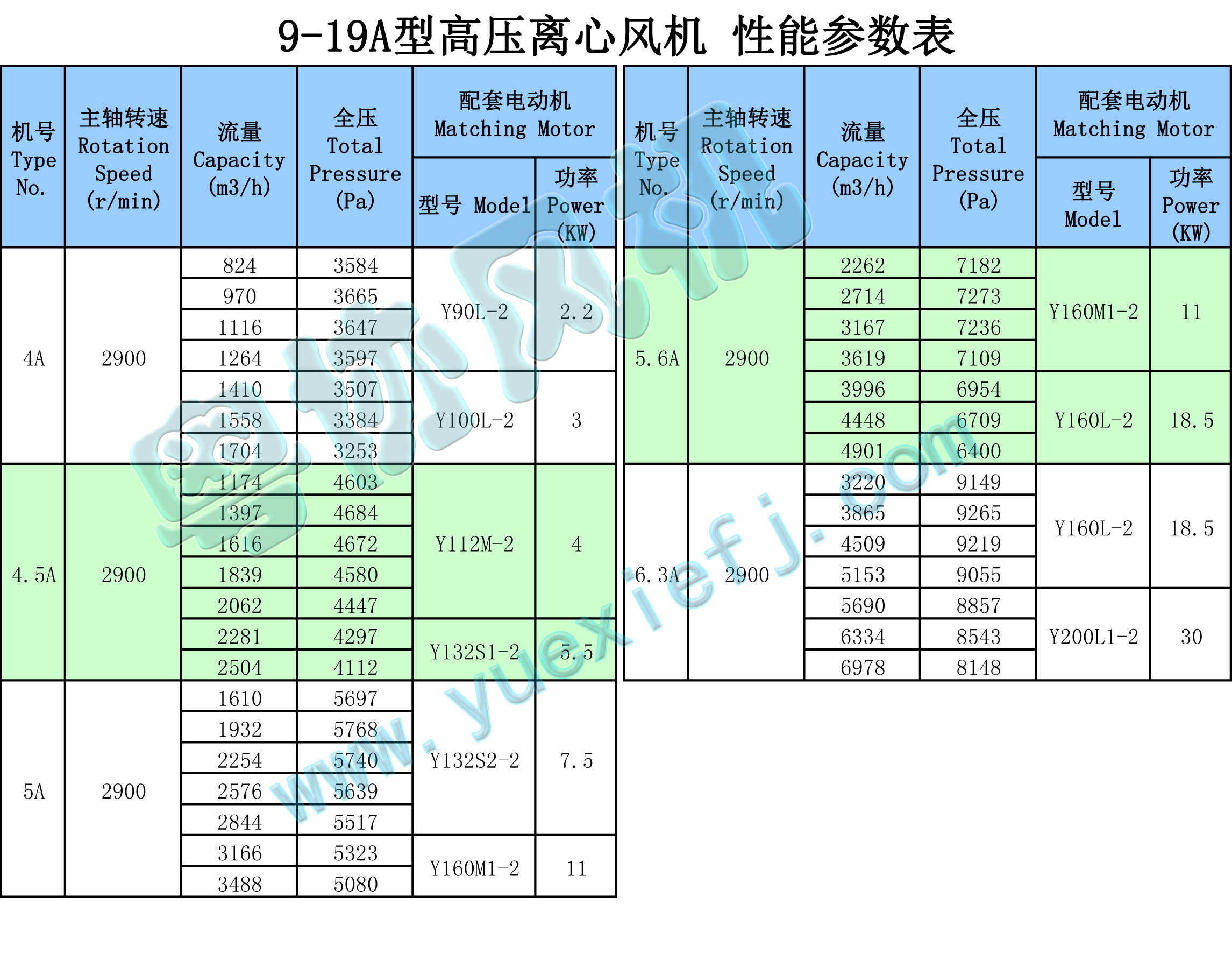 1、高壓離心通風(fēng)機(jī)均為單吸入,通常有№4、4.5、5、5.6、6.3、7.1、8、9、10、11.2、12.5、14、16,共13個(gè)機(jī)號(hào)。