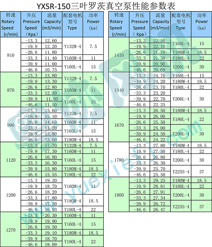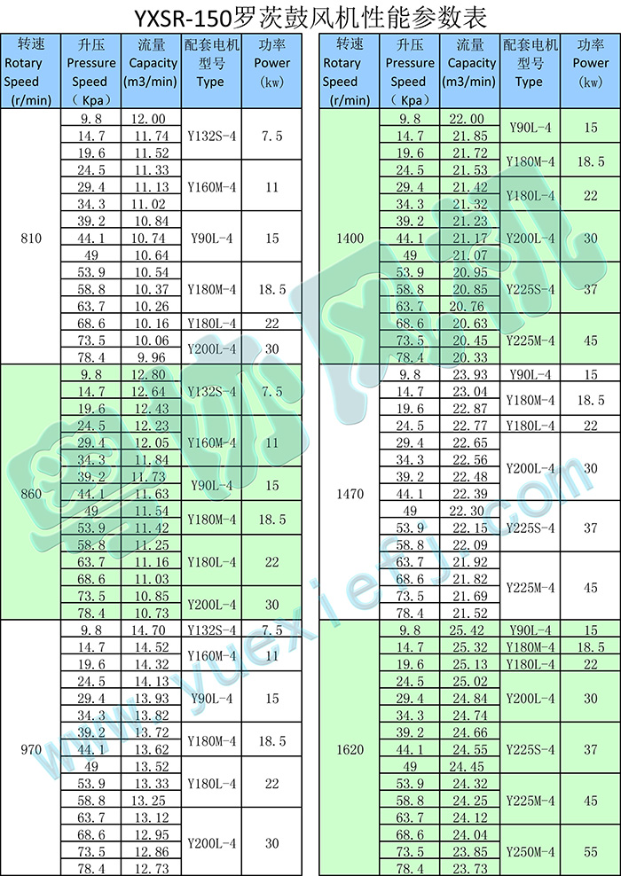 - 產(chǎn)品簡介:三葉羅茨鼓風(fēng)機(jī)有鼓氣和吸氣兩款,YXSR-150系列的三葉羅茨鼓風(fēng)機(jī)的流量范圍在4.93~27.15m3/min之間。