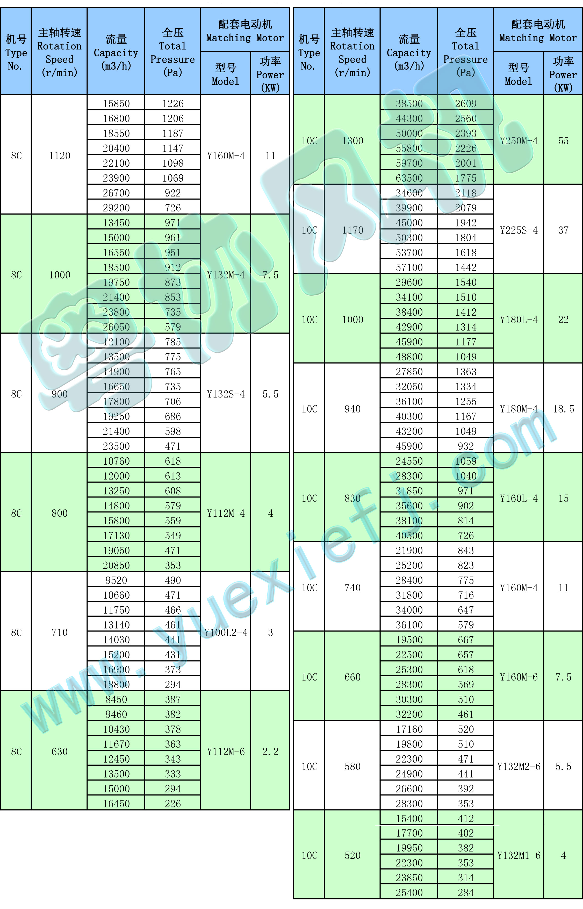 №3A~6A離心風(fēng)機(jī)主要由葉輪、機(jī)殼、進(jìn)風(fēng)口等部分配直聯(lián)電機(jī)組成;№7C~12E除具有上述部分外,還有傳動部分。